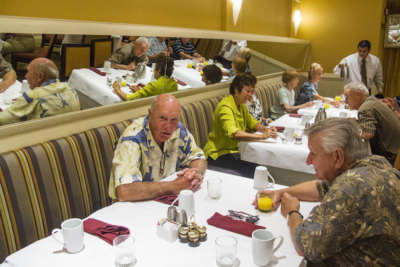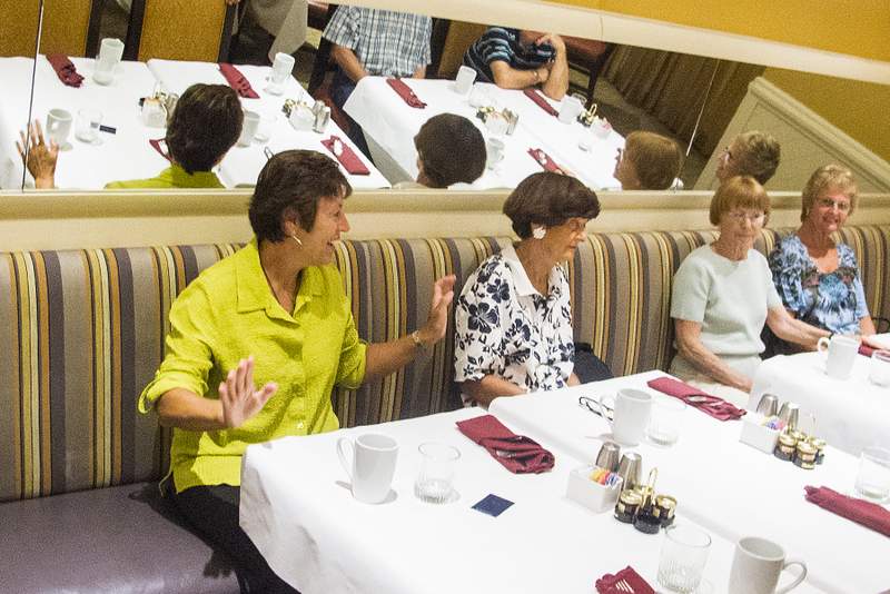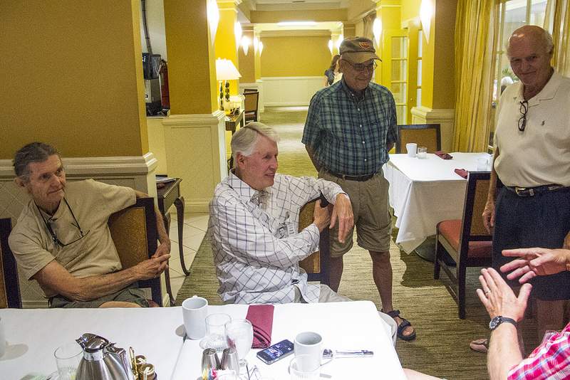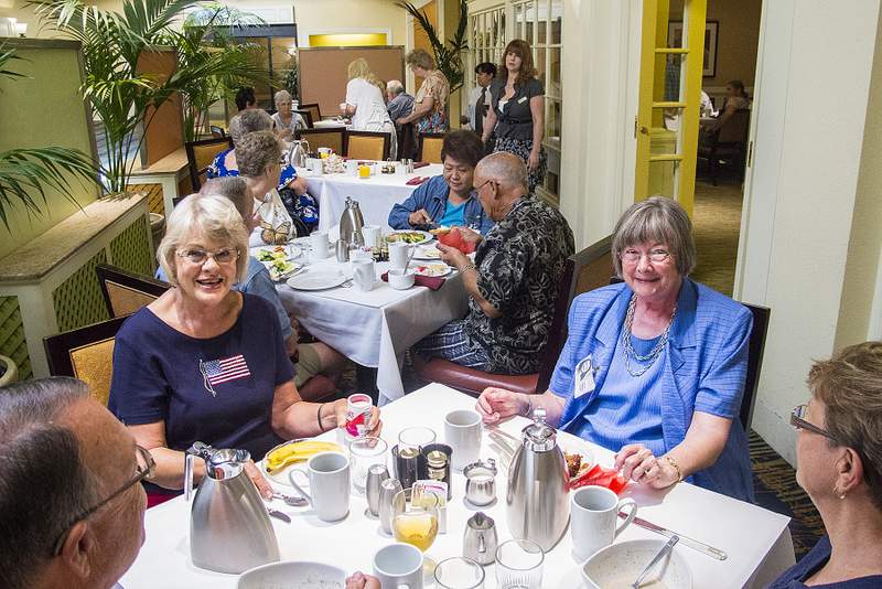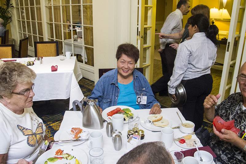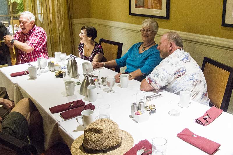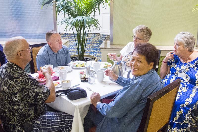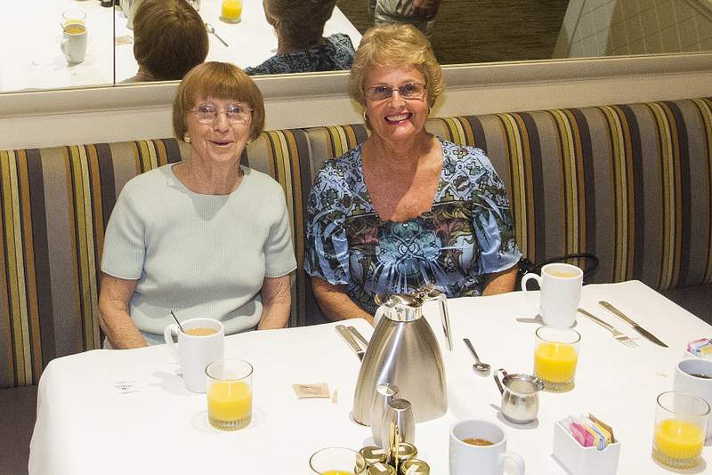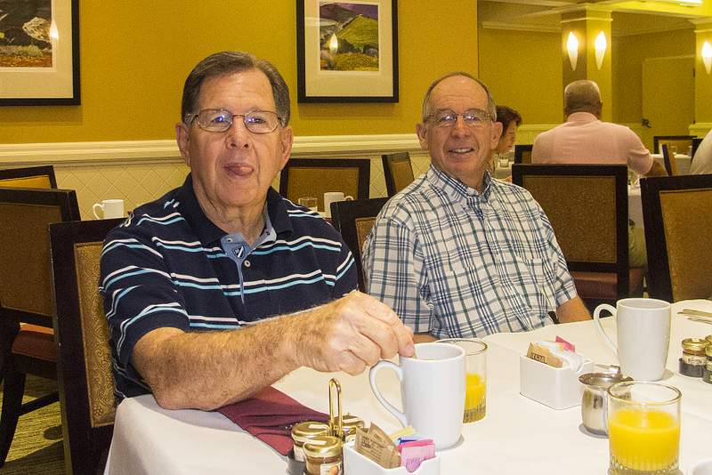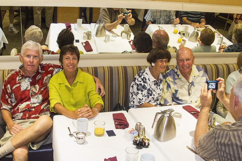This provided another great opportunity to visit with fellow classmates before departing for home. Following are some photos taken at the Sunday morning brunch. Names have now been added where known. Please report errors and omissions. Name Format: Class Member in Bold Font (Examples: Gail and Dave Cantrell) |